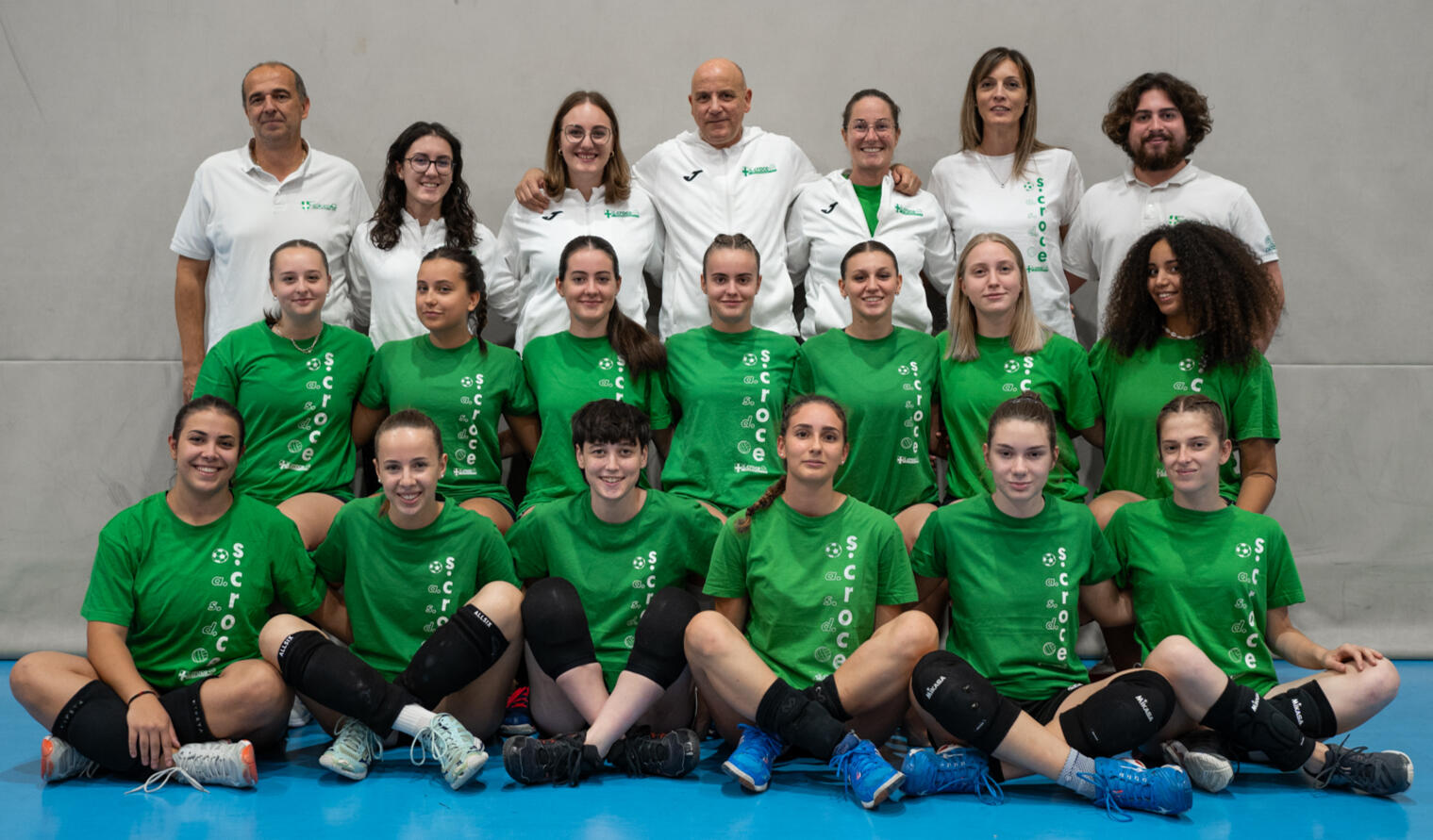 Correva l’anno 1979 quando un folto gruppo di ragazze cominciò a radunarsi nel piazzale della chiesa di S. Croce, coinvolte dalla grinta appassionante e contagiosa di Emanuela Giacobbo. La pallavolo femminile di S. Croce intraprese la sua attività senza palestra, senza divise e solo con qualche pallone malandato. Si partiva di corsa dalla chiesa, si faceva il giro dei campi attorno al cimitero e si finiva in campo di atletica a fare un po’ di stretching oppure più semplicemente a chiacchierare.